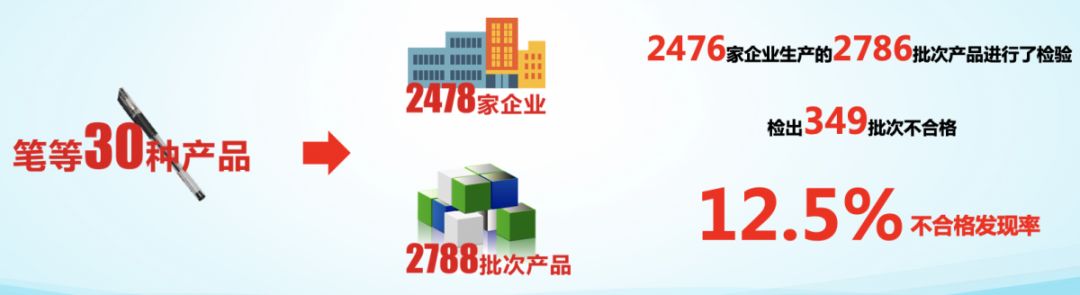 对2476家企业生产的2786批次产品进行了检验,检出349批次不合格,不合格发现率为12.5%。